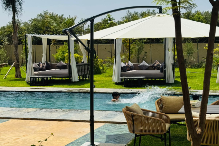 Отдохните на нашей изысканной вилле, расположенной всего в 25 минутах от Марракеша, в окружении захватывающей дух природы Атласских гор. Начните свой день с удобного трансфера в 10:00 утра и приготовьтесь к блаженству, наполненному солнцем и отдыхом.